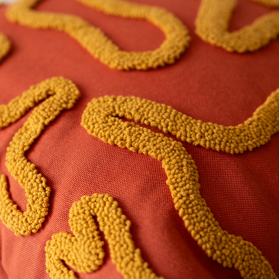 Akışta Yastık, bu hissin ta kendisi. Keten kumaş üzerine kadife iplerle punch tekniğiyle işlenmiş çizgili deseniyle hem doğal hem modern bir görünüm sunar. El emeği dokusuyla her köşeye sıcaklık katar, rahatlatıcı bir enerji taşır.