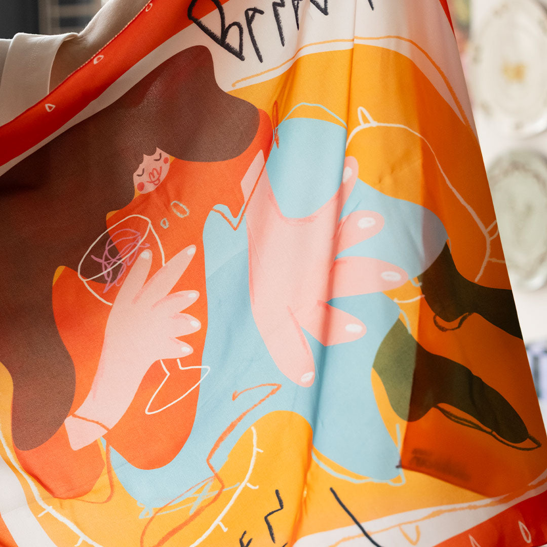 Bu fular her yerde seninle: boynunda, saçında, çantanda. Kombinlerine küçük dokunuşlar, gününe renk katar.