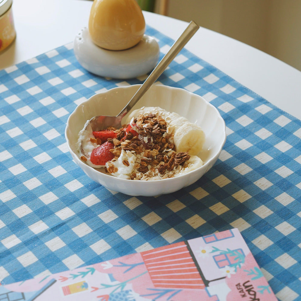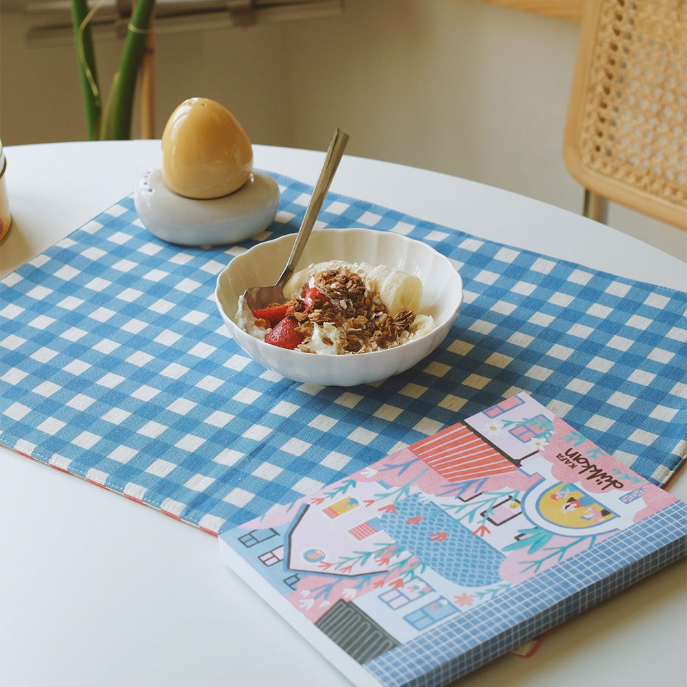 Kırmızı da var, mavi de. Bu dört parçalık çift taraflı servis seti sofrana renk ve hareket katıyor. Pötikare deseniyle kahvaltıya da pikniğe de tatlı bir nostalji taşır.