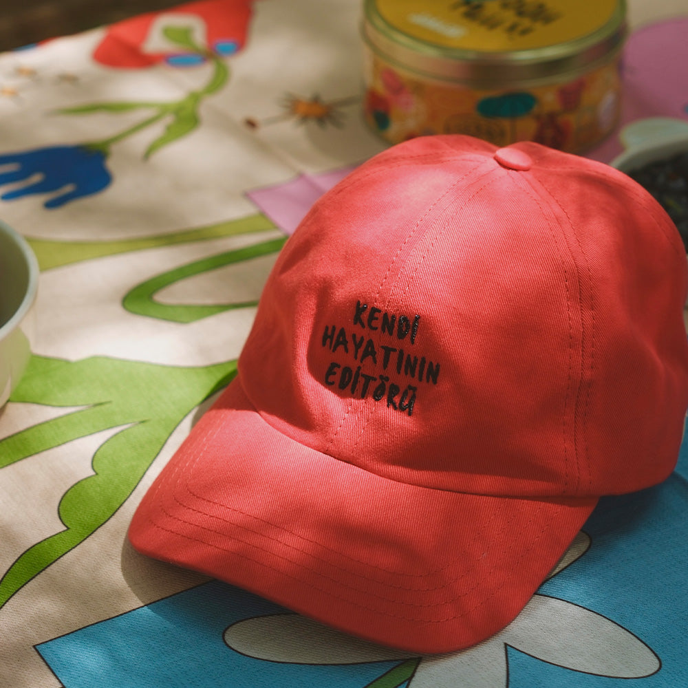 Bu şapkalar yalnızca güneşten korumaz, üzerindeki yazılarla sade bir görünümün içine küçük bir detay bırakır.