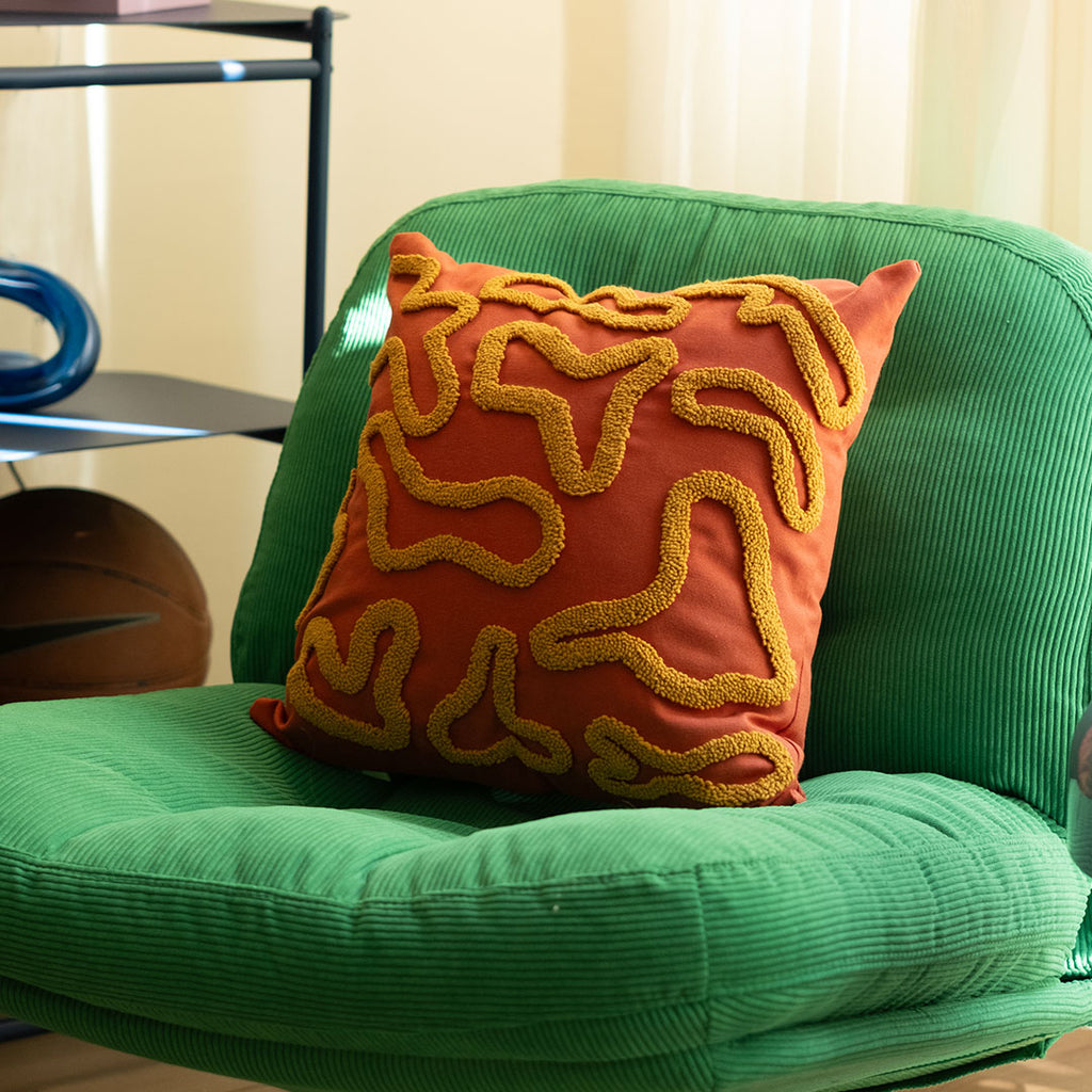 Akışta Yastık, bu hissin ta kendisi. Keten kumaş üzerine kadife iplerle punch tekniğiyle işlenmiş çizgili deseniyle hem doğal hem modern bir görünüm sunar. El emeği dokusuyla her köşeye sıcaklık katar, rahatlatıcı bir enerji taşır.