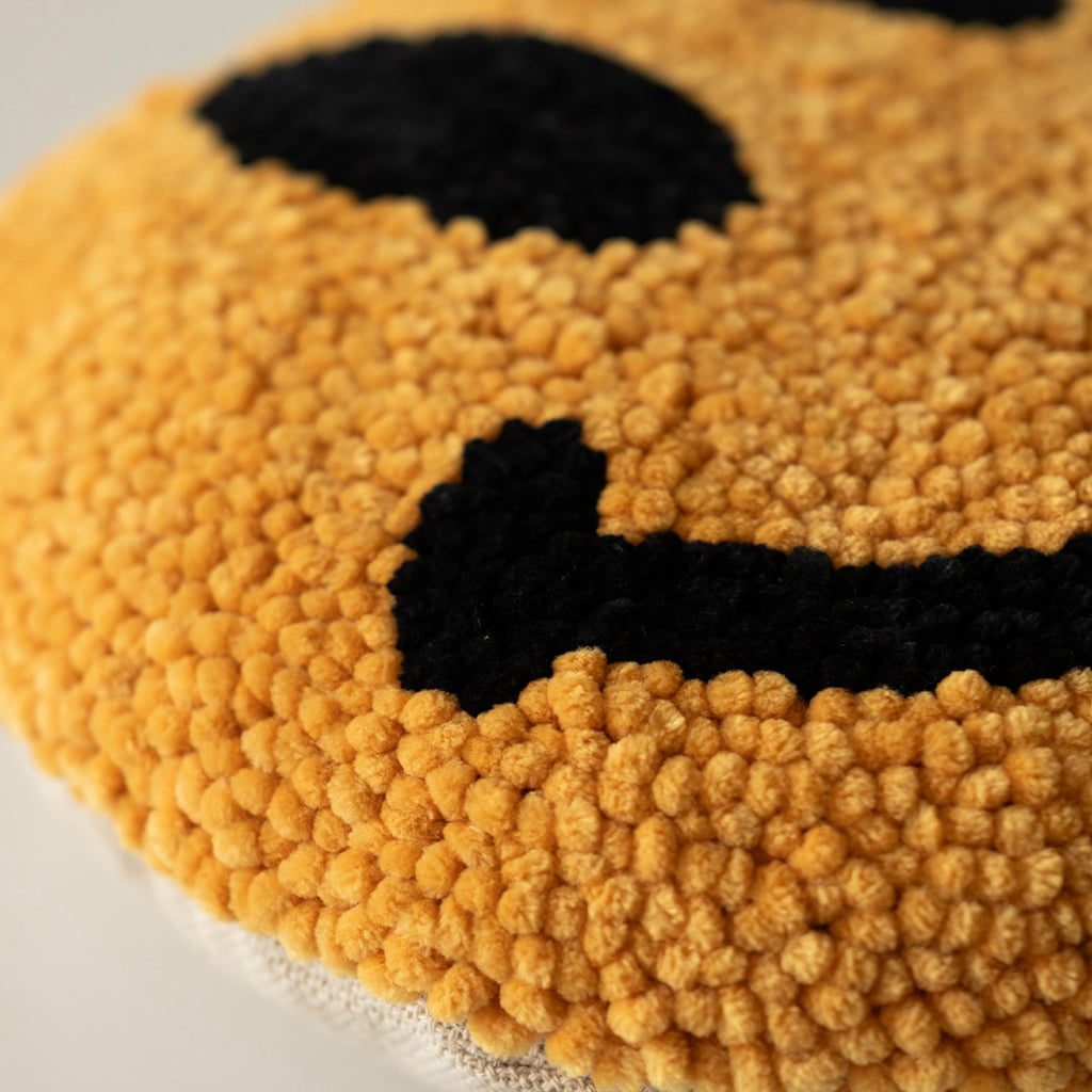 El yapımı punch tekniğiyle kadife iplerden oluşturulan bu yastık, yumuşacık dokusuyla hem neşeli hem dekoratif bir parça. Her baktığında içten bir gülümseme bırakır; kanepeye, yatağa ya da çalışma köşene iyi gelir.